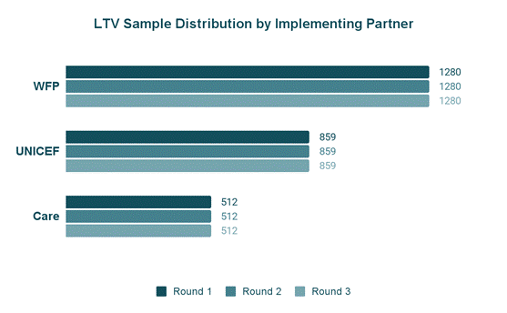 • UNICEF: 859 beneficiaries were surveyed in Borno (428) and Yobe (431). Data collection was supported by lists of health facilities and beneficiary distribution provided by UNICEF per LGA.